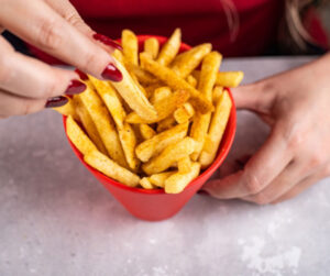 150 grams of beef burger + cabbage salad + fries + ketchup